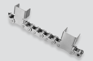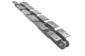 Double pitch conveyor chains with attachments